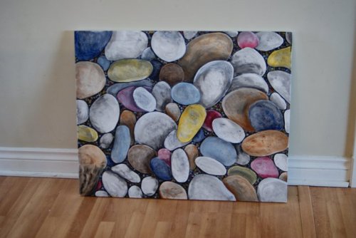 The artists in our family include Ethel Mortenson Davis, Kevin Davis, Sonja Bingen, and Phoebe Wood. Sonja is primarily a muralist, but Bay Stones is done on canvas.